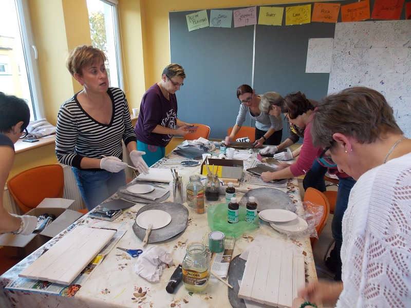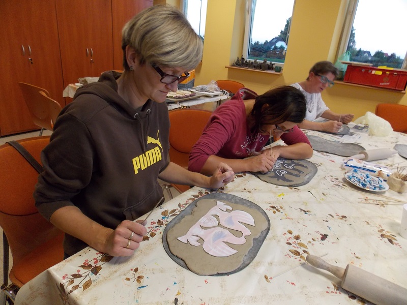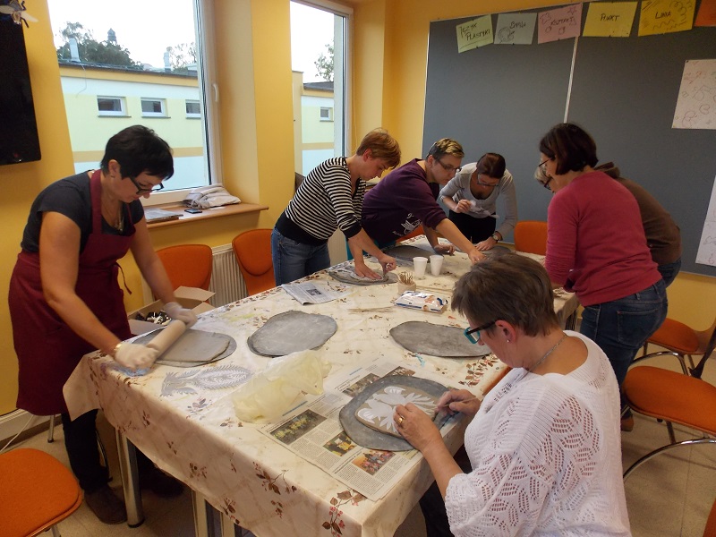 Podczas pierwszego spotkania panie wykonały bazę pod dekorację ścienną oraz gliniany element dekoracyjny.